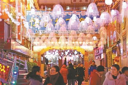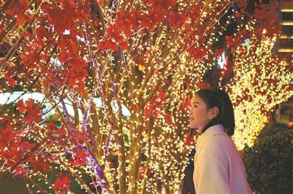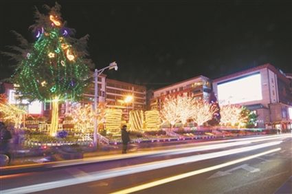 火樹銀花不夜天,流光溢彩呈繽紛?!敖衲甑囊咕罢嫫涟?!”旺姆阿姨和登增叔叔晚飯后帶著孫女來到將軍橋散步,在自己的家鄉(xiāng)欣賞到如此美妙的景色,登增叔叔忍不住夸贊。此時(shí),將軍橋道路兩旁的綠化帶在彩燈的映襯下輪廓畢現(xiàn),與玻璃棧道上的光影交相輝映,城市美景盡在其中。