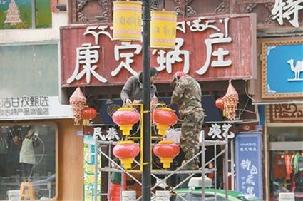 春節(jié)的腳步越來越近,最近幾天,康定市主要街道、河畔、公園、廣場(chǎng)處處懸掛起燈籠、燈帶等裝飾品,充滿濃濃的節(jié)日氣息。