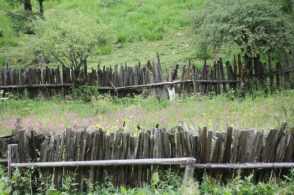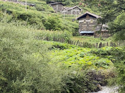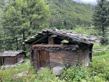 隨著海拔高度的升高與緯度的增加,一路上的植被類型也在不斷發(fā)生著變化。穿越深闊的暗針葉林,六匹馬起起落落的腳力踩出了一個馬幫的回音,所有的植物在各自的生命活動中散發(fā)出了清新怡人的芬多精,吉美為此小聲哼唱起了愉悅的歌兒,細聽卻又像是兩只云雀在不遠處鳴囀。再往上走,周遭的林木又轉(zhuǎn)換成了密致的高山杜鵑林,無數(shù)修長的木流蘇垂掛在樹枝上,像哈達。一路沉默的南杰轉(zhuǎn)頭來開始與我說話“六月間,這里的每一棵樹都開滿了粉白的花朵,一樹樹的煞是壯觀好看,我一個人經(jīng)過,總能聽到一朵、兩朵花鈍落的聲音。最初,我以為是馬雞飛落了,輕聲走入林中打探,身后又會落下一朵、兩朵花,那聲音厚重沉實,林中又過于安靜,我就慌忙走出了林子......”南杰說話聲音秀氣,我聽得時斷時續(xù),過風(fēng)吹送著南杰話語中杜鵑花的香氣。前路逐漸敞亮起來的時候,路邊的杜鵑樹開始變得稀稀落落了,只見路旁堆壘著高高低低的新鮮柴垛。再往上就沒有樹木了,只有矮腳盤香和淺草,路邊的山包上緊貼著密密麻麻的貌似多肉植物的草葉,從草心抽出來一枝枝薔薇紅的花柱在風(fēng)中頻頻點頭。雍貝在前方的馬匹上頭低得越來越沉,以為他瞌睡,我喊了聲貝,他回頭看我,面色灰白嘴唇有些發(fā)紫。南杰回望我們后一躍下馬,從路邊的淺草中折斷幾根盤香枝別在雍貝的耳際,說是可以抵御高反。剩余的兩根遞給我,細小的枝葉上積著一層薄薄地灰色粉塵,深嗅有松脂的清香氣味,安人心神。