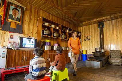 觀看圖片展的贈(zèng)科小學(xué)退休老校長(zhǎng)阿伙布老人一邊指著贈(zèng)科鄉(xiāng)安卡村的全貌圖,一邊自豪地給身邊觀展的人群說(shuō):“這是我的家鄉(xiāng),在六七十年代的時(shí)候,村里房子是沒(méi)有樓層的土木房?,F(xiàn)在,村里的人居環(huán)境有了很大改善,房子也修得很漂亮??吹郊亦l(xiāng)的變化,我非常高興?!?/p>