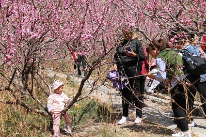一抹抹溫暖明媚甚至跳躍著的桃紅,醉了眼簾,醉了心田。此情此景,掏出手機(jī),隨手按下快門,就是一幅絕美的春日桃花圖,想不流連忘返都難。一彎春水,一場(chǎng)花事,引來眾多市民、游客前來觀賞打卡,大家在桃花樹下擺著各種造型,或拍照,或拍短視頻,還有的在這醉人的花海里唱起了歌,跳起了舞,縱享春日大美時(shí)光。