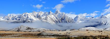 措普湖海拔4000米,屬第四紀(jì)冰磧湖,清澈碧藍(lán),為森林與草甸所環(huán)繞。湖泊東北岸的扎金甲博神山,巍峨壯觀。措普寺坐落在湖邊,寺廟、森林和湖光山色相交融,猶如仙境。