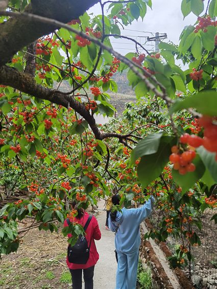 四月,櫻桃正紅,眼下有著春果第一之美譽的櫻桃已陸續(xù)成熟。走進瀘定的村村寨寨,道路邊、院墻里、田地里,晶瑩透亮的瑪瑙紅櫻桃再次掛滿枝頭,散發(fā)出誘人的甜香,吸引了不少游客前來采摘打卡。