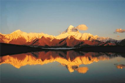 在倒影的映襯下,貢嘎這時(shí)似乎就是天宮中的圣域,閃閃發(fā)光的金色提醒著凡人,那里是神的領(lǐng)域。