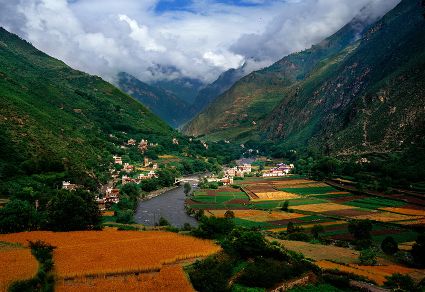 丹巴藏寨是嘉絨藏寨中最具特色的。尤以甲居、聶呷、革什扎和巴底鄉(xiāng)最為突出,冰川雪線之下,村落散布,一幢幢民居依山就勢(shì)、錯(cuò)落有致地融于自然環(huán)境中,體現(xiàn)了天人合一的理念。遠(yuǎn)遠(yuǎn)看去,充滿靈氣的山谷中,翡翠般的青草綠樹之中,是那沉甸甸的田地和隱在密林深處的寨房,伴著潺潺溪流,一幅富有動(dòng)感的絕妙山寨畫卷隨之展示在你的眼前。
