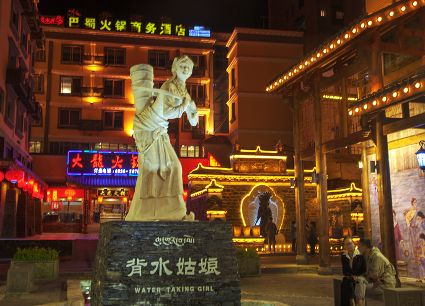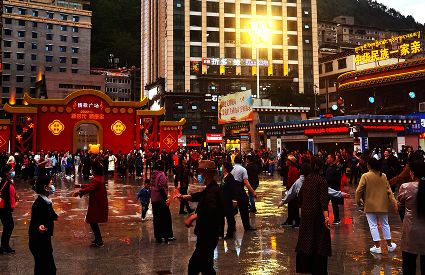 流光溢彩的不僅僅是夜的迷醉,閉上眼你也會(huì)聽到情歌的婉轉(zhuǎn)映山映水。紅袖翩翩起舞,踢踏舞步高昂,豪放的激情足以讓過往的游客挪不動(dòng)腳步。