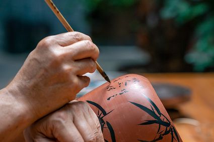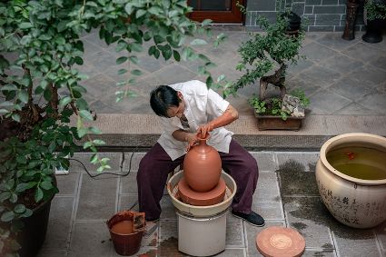 生活在云南省紅河哈尼族彝族自治州建水縣碗窯村的徐榮洪是當?shù)匦旒腋G的第五代制陶藝人,也是非遺建水紫陶燒制技藝的傳承人。 泥料制備、拉坯造型、濕坯裝飾、雕刻填泥、高溫燒制、無釉磨光……要想做出精良的紫陶工藝品,每個流程都需要潛心鉆研。“制作技藝環(huán)環(huán)相扣,某一道工序出現(xiàn)紕漏,燒出來就是瑕疵品?!?徐榮洪拿起刻刀,對陶坯表面開始進行雕刻。 今年57歲的徐榮洪小時候就跟著長輩上山挖陶泥,多年來堅持鉆研建水紫陶的制作技藝。 徐榮洪介紹說,作為紫陶藝人,以陶為紙,根據(jù)器型將不同的文化與藝術形式注入其中,使其具有無限活力。非遺文化閃爍著人類智慧的光芒,也承載著人們心底的情思鄉(xiāng)愁。