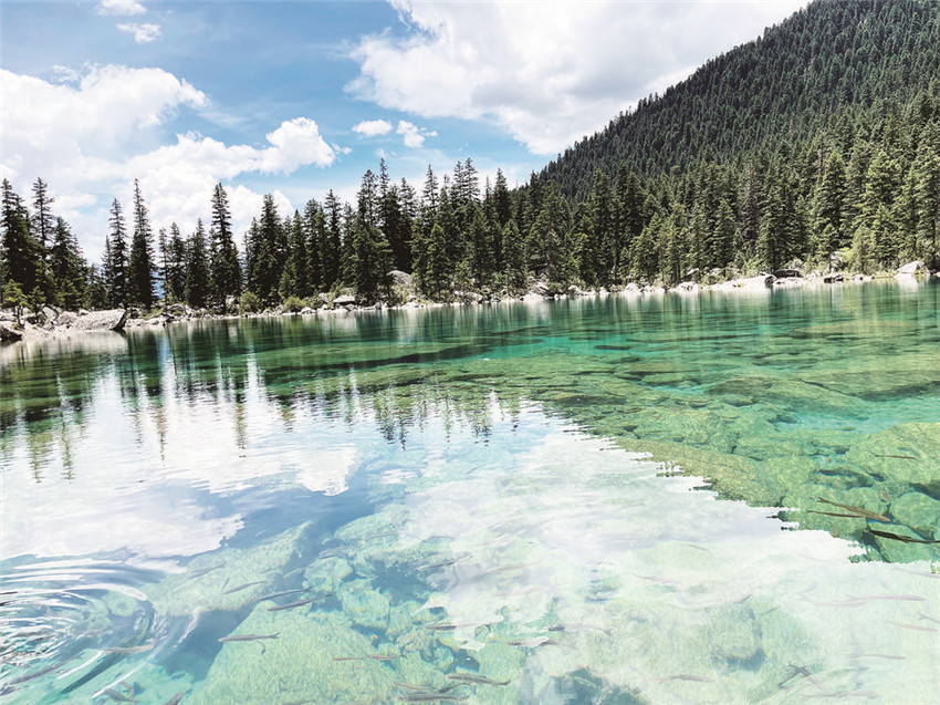 據(jù)說,只要你站在湖邊,向湖里發(fā)出"嗚、嗚……"的叫聲,不一會兒湖中的魚便會成群結(jié)隊(duì)地蜂擁而至,當(dāng)你把拿著魚食的手放入水中,它們就會爭相"親吻"你的手,或躍出水面向人行“見面禮”,讓你充分感受到人與自然的高度和諧。