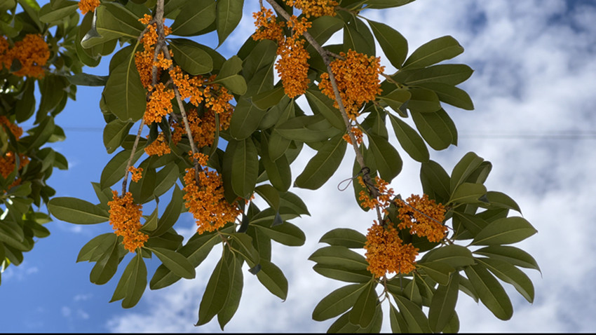 無間纏綿的秋雨后,漫步在巴塘的街道,悠悠的一股香氣沁入心扉。此時(shí),頭頂?shù)乃{(lán)天,云卷云舒,嬌小的丹桂掛在樹梢枝頭輕輕搖曳,花香詩意相融于高原江南別有意趣。