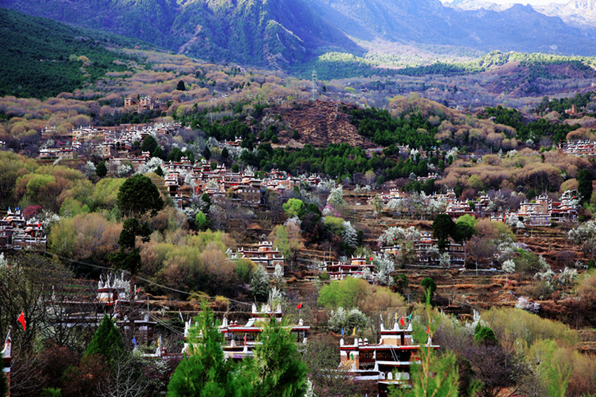 雪山、碉樓、藏寨、美人共同勾勒出一幅精美絕倫的春日藏寨梨花圖。春日里的梨花造就了丹巴的“三絕”。“一絕”即梨花配藏寨;“二絕”即梨花配碉樓;“三絕”即梨花配美人。