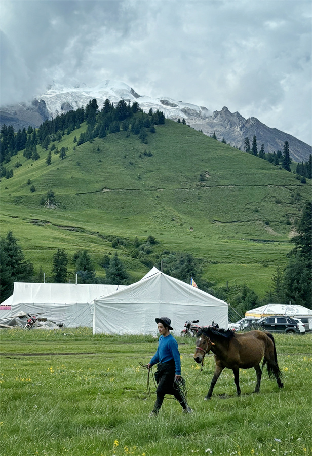 不管然日卡村還是則巴村,村民的勤勞善良也一樣讓人印象深刻。然日卡村的藏族姑娘丁真拉珍剛過18歲,卻經(jīng)常像個將軍去山上放牧和指揮100多頭牦牛,如果時間允許,她還去挖蟲草和松茸,但同時又在村里當旅游向?qū)ВT上摩托、牽上馬匹帶游客四處參觀,每天忙得不亦樂乎;同樣是然日卡村的小伙澤仁剛?cè)⒘宋棠饭媚?,他們從傳統(tǒng)的放牧中抽身出來,與村里許多年輕人一樣,一心一意打造鄉(xiāng)村民宿,用勤勞的雙手走上了一條嶄新的致富路;而則巴村的帥小伙甲他,今年也在村子里建起了屬于他們一家的“奔然甲他”民宿,奔然是村前一座小山的名字,甲他相信他們的日子一定如山一般堅實越過越好。