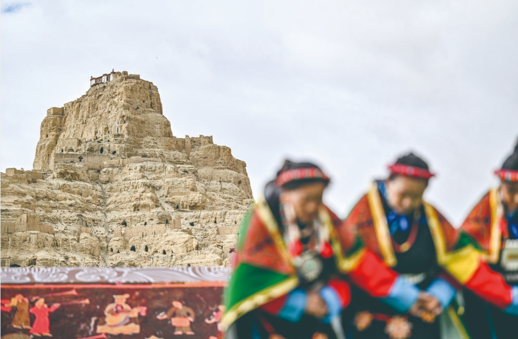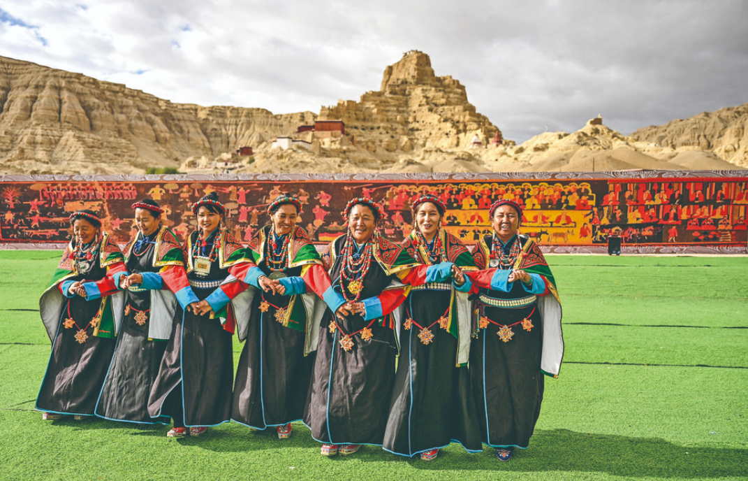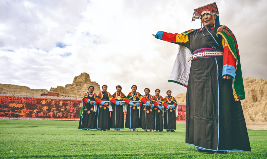 “宣舞”起源于札達(dá)縣,是西藏阿里民間傳統(tǒng)舞蹈?!靶琛比诤喜貞颉⑽璧?、說唱等主要的藏民族民間藝術(shù),內(nèi)容涵蓋藏民族宗教、禮儀、風(fēng)俗、節(jié)慶等各方面的內(nèi)容。2008年,“宣舞”入選第二批國(guó)家級(jí)非物質(zhì)文化遺產(chǎn)名錄。