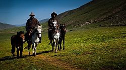 當(dāng)扎溪卡草原一望無際地層現(xiàn)在面前時,相信你一定會被深深地打動。它那氣勢磅礴不事雕琢的自然美,它的質(zhì)樸、純凈、蒼茫與曠漠,有一種大美不言的深沉。天空藍得透明,像一個巨大的藍色熒屏;云彩白得晶瑩,如絲如絮般輕輕飄過頭頂;清澈見底的雅礱江水蜿蜒流過開滿野花的草地,就連草原上的風(fēng)都帶著一股醉人的氣息。置身其間,讓人頓感神清氣爽、心曠神怡。 即使無數(shù)次地領(lǐng)略過高原上日出月落的景象,但這里的日出自有其不同凡響的輝煌。當(dāng)月亮漸漸淡出天幕的時候,大自然又開始了另一場更加精彩的演出:殷紅的太陽如同宇宙娩出的嬰兒,在天地被撕裂的一剎那噴薄而出,迎來了它隆重的誕生!母親幸福的臉上頓時泛起了燦爛的紅霞,把湛藍的湖水染成了酒紅,使素潔的雪山披上了盛裝,大地萬物都如受洗一般沐浴在金暉里,仿佛剛剛與太陽一同新生……