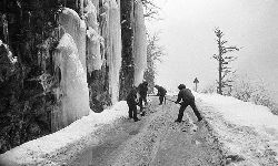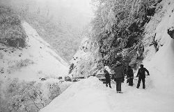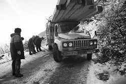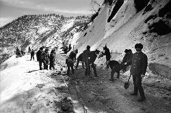 一九九七年十一月二十四日,連續(xù)多日大雪,把整個二郎山裹得嚴嚴實實,白茫茫一片。陣陣山風(fēng)吹過,大霧就像瀑布一樣,從山頂直往下翻涌傾瀉。 一大早,州交通局打冰除雪排險的干部職工就從二郎山管理站直奔山埡口。載有防滑砂的大貨車穿迷霧,繞山梁,向山頂埡口疾馳。由于氣溫太低,霧又大,車上的擋風(fēng)玻璃很快就結(jié)下了冰,路面打滑非常嚴重。前面車輛堵了起來,排險人員只好下車步行。 大霧彌漫,能見度很底,陰霾的天空又飄起了紛紛揚揚的雪花,剌骨的寒風(fēng)陣陣襲來,只聽見車蓬布在風(fēng)中“嗶剝”作響,卻看不見前面到底堵了多少車。排險人員只好相互攙扶踩著冰滑的邊路艱難地向行。好不容易來到堵在最前面的車子面前。原來是一輛載著原木的東風(fēng)牌大貨車側(cè)滑在公路上,把整個公路堵死了。 局領(lǐng)導(dǎo)當即指揮大家用鋼釬、鐵鎬和鋤頭處理冰道,沒有撮箕,大家借來加水桶裝運冰雪……氣溫仍在急劇下降,剛從雪堆里刨出來的路,又被結(jié)起一層冰,就像地面上澆上了油,這就是冰雪道上有名的“桐油凌”。 有二位老同志不顧年老體弱,積極參與打冰除雪,一個在打冰時,被彈起的冰碴把腦門劃了一個口子,鮮血直往外冒。有人想幫他包扎,他堅決不干,自己就用手帕按住,把帽子向下拉蓋住傷口就算了。血從手帕中浸透出來,與眉毛上的冰凌結(jié)在一起。氣溫太低,冰層太厚,十字鎬每挖一下,多數(shù)情況下也就是挖下一個白點而已。不一會兒,另一位老同志已是滿頭大汗,大家勸他休息一下,他卻說:趁著現(xiàn)在雪不是太大,早點把主道上的冰雪多除點,過往二郎山的車輛就多一份安全。 排險人員的手凍紅了,刨冰雪碰傷的指頭還流著鮮血,身上蒸發(fā)的熱氣,把衣領(lǐng)口、袖子口和褲子口結(jié)成了冰,可是,誰也沒有吭一聲。 ……受堵車輛終于向前開動了。 風(fēng),越刮越猛,雪,越來越大。 防滑車在冰雪道上艱難地向前爬行著,車箱上面的職工們揮舞的洋鏟向路面撒著防滑砂。一路上風(fēng)絞雪,防滑車象一頭不聽使喚的牛,顛簸、亂竄,好不容易才來到260(二郎山最險處),對這里“桐油凌”路面進行重點防滑處理后,防滑車又返回來,開始向山頂進發(fā)……風(fēng)雪二郎山上打冰除雪、防滑排險,看似沒有驚天動地的壯舉,身臨其景才知其艱難辛苦。難怪當年每每經(jīng)過二郎山冰天雪地奇險路段的車,都會向風(fēng)雪中屹立路邊的交通系統(tǒng)排險保暢通的職工們鳴笛致敬,風(fēng)雪中的那份情彌足珍貴。 川藏線上的老司機傳下來一首傷心的順口溜:“車過二郎山,如闖鬼門關(guān),萬幸不翻車,也要凍三天!”其險峻實為罕見,尤其是途經(jīng)二郎山260(公路公樁)處,曾被淡虎色變的人稱為“鬼招手”的險路段。 1983年1月3日,有著安全行車44萬公里記錄的一位駕駛員開著輛嶄新的東風(fēng)牌貨車,同行還有兩名職工,夜行二郎山,在彌天大霧中神秘地“失蹤”了。十五天后,搜山的人才用望遠鏡看到260公里路樁處的山崖下,有一塊汽車破篷布掛在樹枝,猶如招魂的凄厲幌幡在冷風(fēng)中招搖晃動。鋼纜繩吊著搜山的人下到崖下400米深處的谷底。扒開一座座雪堆,叫人汗毛倒豎:雪堆下,盡是廢大梁、爛車廂、銹車頭和支離破碎的汽車,足有一個汽車連!一輛不知埋了多久的卡車廂里牛肉已腐爛,駕駛室里坐著三具發(fā)黑的僵尸……其狀慘不忍睹!