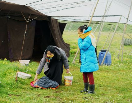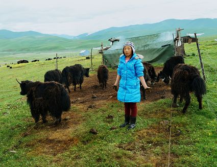 達(dá)珍和她的丈夫是我州爐霍縣宗塔草原上普通的牧民,育有一對(duì)兒女,都在縣上讀書(shū),小兒子上小學(xué),大女兒讀初中,放暑假,11歲的女兒回到了牧場(chǎng),幫助阿爸、阿媽放牧。女兒的到來(lái),讓達(dá)珍家每一天都充滿了歡笑,7月中旬的一天,筆者來(lái)到了這里,用像機(jī)記錄了達(dá)珍的一個(gè)早晨,那是一個(gè)朝霞滿天的開(kāi)始?!?郭昌平 攝影報(bào)道