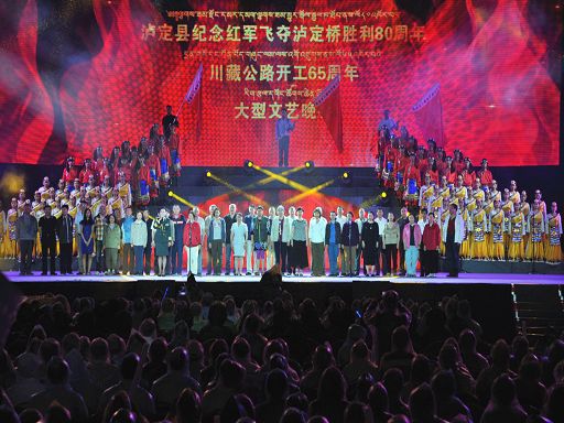 5月29日晚,一臺(tái)由中共瀘定縣委、瀘定縣人民政府主辦,四川師范大學(xué)承辦的瀘定縣紀(jì)念紅軍飛奪瀘定橋勝利80周年暨川藏公路開工65周年大型文藝晚會(huì)《永遠(yuǎn)的豐碑》在瀘定縣瀘定橋廣場(chǎng)震撼上演,200多名演職人員參與演出,萬(wàn)余人現(xiàn)場(chǎng)觀看。