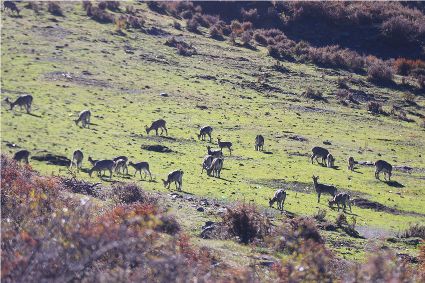 積雪融化后在卡瓦洛日腳下,匯集成兩個(gè)長(zhǎng)800米、寬300米的姊妹湖。雪山俯瞰湖泊,湖泊倒映雪山,奇花異草簇?fù)碇矗飾⒅咴傍喓透鞣N水鳥(niǎo),一切都顯得那么相映成趣,是欣賞和拍攝卡瓦洛日的最佳視角之一。 (根呷扎西 攝)