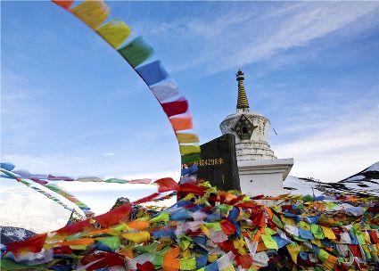 回首山隘處,白塔矗立,彩幡獵獵起舞。一聲破霧的汽笛嗚叫隨風(fēng)而至,喚起了大山深藏的靈動(dòng),奢侈的想象便從歲月的岸頭涌向洞開(kāi)的現(xiàn)實(shí)。千年蒼桑古道遺棄于草荒,驚起的褐鷹盤旋于半空不知所措。誰(shuí)說(shuō)大山無(wú)語(yǔ)?霎間,云奔日耀,眩目的光瀑中流動(dòng)的畫頁(yè)迎面涌來(lái),層出不窮。