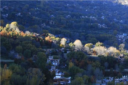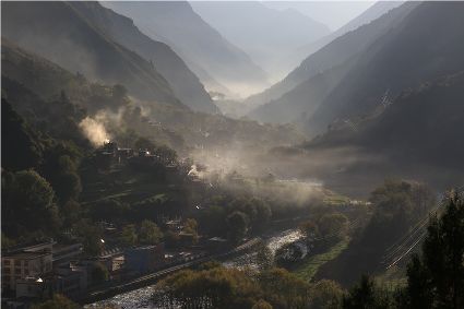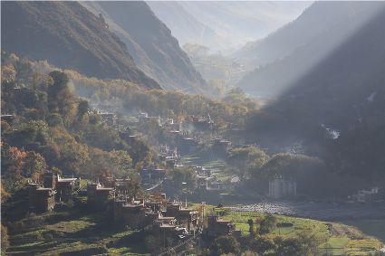 落日將最后一道霞光在山尖劃過,暗夜便裹挾這寒意搖動起山林中的樹木。風漸緊,那已經(jīng)稀稀落落的樹葉隨著風的韻律,跳起歡快的鍋莊,仿佛在告別這一年的繁華。突如其來的大雪,給丹巴的二月涂上白色的記號。從山尖到院前的樹上,一溜兒雪白,正應(yīng)了“忽如一夜春風來,千樹萬樹梨花開”的情景,讓人忍不住伸出手指看看這花是真是假。大雪過后,陽光如約而至撒滿藏寨,金色陽光和蒸騰的白霧縈繞在雪白的山頭,與山下的古碉藏寨,河畔的清流巧妙地構(gòu)成一幅絕美畫卷,讓人仿佛身處仙境。吸足了養(yǎng)分的柳樹終于抽出綠芽送來春天的信號,那柳條兒在細風吹拂下宛如少女對鏡梳妝,在陽光下顯得無比溫柔,讓人不禁想貼近它們,感受這溫暖又靜謐的溫柔。
