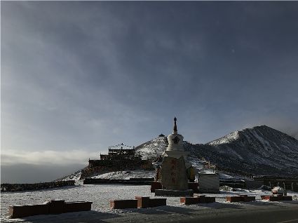 記得,離開甘孜縣城,前往滿金寺的那個早晨。同行的幾個人早早用過了早飯,趁著出發(fā)前僅有的一點(diǎn)時間,站在頂樓視野開闊的餐廳里,盼著太陽沖出來,直接把陽光大把大把地扔在大雪所覆蓋的一切事物上。天公作美,出發(fā)之前,太陽慷慨了一回。于是,一陣噼噼啪啪的快門聲響了起來,應(yīng)和著寥寥餐廳里的某種空白。
