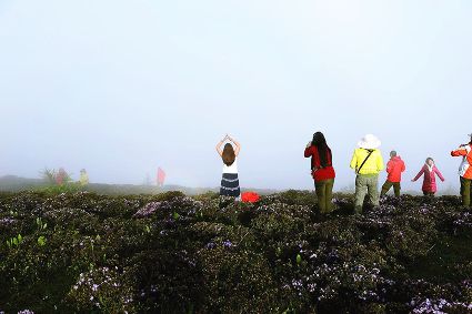 高爾寺山位于新都橋與雅江之間,山上遍布的黑色經(jīng)石是由早年在當(dāng)?shù)匦扌械睦锉呈瘔酒龆伞M山蒼夷,唯有山間云海為其增添了幾縷浪漫。