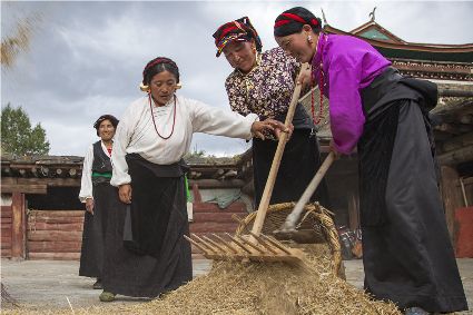 康定市姑咱鎮(zhèn)達(dá)杠村村民李翠軍一邊采摘著蘋果,一邊喜悅地告訴記者,達(dá)杠所產(chǎn)的蘋果個(gè)頭大、色澤好、吃味好、耐儲藏,到目前,全村蘋果種植面積800多畝,去年蘋果產(chǎn)量160萬斤,今年雨水好,蘋果產(chǎn)量將猛增到200萬斤以上。目前,村子里蘋果種植大戶家庭年收入過10萬元的就有20多戶。康定市將達(dá)杠村打造成川藏觀光農(nóng)業(yè)第一村。按照規(guī)劃,村里會進(jìn)一步擴(kuò)大蘋果種植面積,以蘋果利用為核心,發(fā)展“春賞花、夏攝影、秋摘果、冬體驗(yàn)”四季觀光農(nóng)業(yè)產(chǎn)業(yè)。五谷豐登六畜興旺,甘孜高原共慶豐收。農(nóng)民豐收節(jié),它既是億萬農(nóng)民慶豐收、曬豐收的節(jié)日,也是全社會享豐收、助增收的節(jié)日;既寄托著農(nóng)民的追求、農(nóng)民的希冀,也承載著全體中華兒女的深情與追憶;中國農(nóng)民豐收節(jié),農(nóng)牧民收獲的不只是甜蜜蜜的果實(shí),鼓起的不只是沉甸甸的荷包,更是滿滿的榮譽(yù)感、幸福感、獲得感!