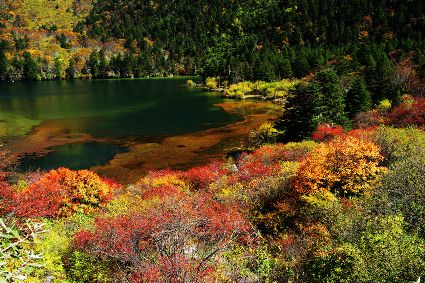 木格措(野人海)作為景區(qū)的核心景點(diǎn)之一,如同一塊珍貴的寶石被四周的森林和大小海子環(huán)繞。