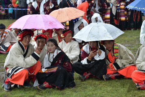 7月31日,四川理塘毛埡壩草原上藏族同胞身穿盛裝齊聚一堂,跳起千人鍋莊,開(kāi)心“耍壩子”。