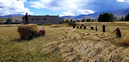 “我們要利用這段晴好的季節(jié),抓緊收割。”在廣袤的原野,村民們開鐮收割青稞,一輛輛滿載成捆青稞的拖拉機(jī)在田間和鄉(xiāng)村小道上歡快地疾馳。