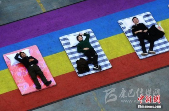 資料圖:市民用露天大睡公益行為藝術(shù)的方式迎接世界睡眠日的到來。 陳超 攝