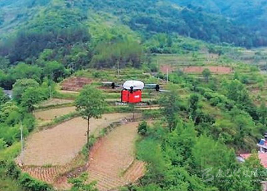 圖為京東集團(tuán)的無(wú)人機(jī)在送貨。