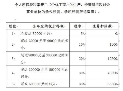 個人所得稅稅率表二(個體工商戶的生產(chǎn)、經(jīng)營所得和對企事業(yè)單位的承包經(jīng)營、承租經(jīng)營所得適用)