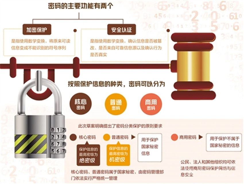 專家表示,密碼是保障網(wǎng)絡(luò)與信息安全的核心技術(shù)和基礎(chǔ)支撐,是解決網(wǎng)絡(luò)與信息安全問題最有效、最可靠、最經(jīng)濟的手段。