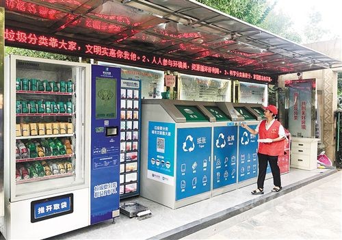 記者采訪發(fā)現(xiàn),浙江省杭州市余杭區(qū)金帝海珀華庭小區(qū)早早引入了浙江聯(lián)運(yùn)環(huán)境工程股份有限公司研發(fā)生產(chǎn)的智能化垃圾箱,居民用積分卡掃碼分類投放垃圾還能賺取積分兌換禮品。
