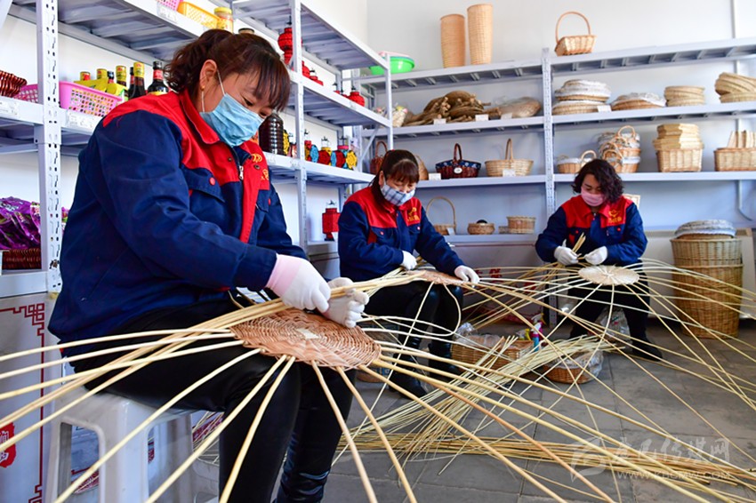 山西省廣靈縣壺泉鎮(zhèn)澗西村村民在扶貧車間里編織工藝品。 新華社 發(fā)
