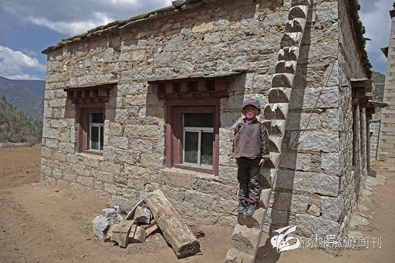 看到我們走過來,一個正在玩耍的藏族小女孩抱起了自家的小狗。(攝影 周崗峰)