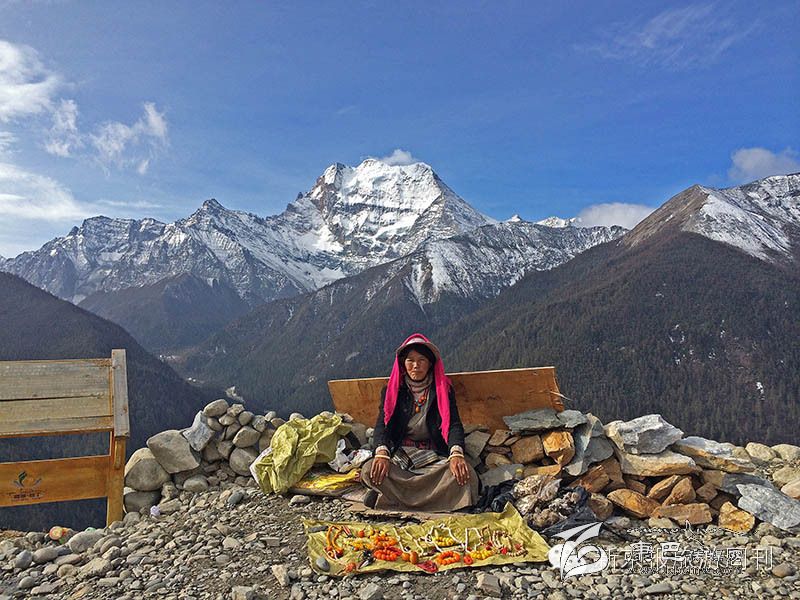 坐環(huán)保車進(jìn)入景區(qū),最好的座位當(dāng)然是倒坐在最后一排。我和那姆背風(fēng)坐著最后一排,看風(fēng)景后退或者說(shuō)是前進(jìn)。那姆給我講起她17歲跟著父母、弟弟,舅舅和表妹六個(gè)人,牽著兩匹馬連轉(zhuǎn)三座神山的經(jīng)歷,一共用了六天時(shí)間,“經(jīng)常是這個(gè)埡口還在下著雪,連著的埡口就是大太陽(yáng),有時(shí)候我身體的左邊在雨里,身體的右邊在太陽(yáng)下。”那姆拍著手歡呼著,“你知道嗎,我被彩虹照過(guò),我就站在彩虹下面,彩虹穿過(guò)了我。”我好喜歡這個(gè)姑娘呀,陽(yáng)光燦爛。有時(shí)候山路特別陡峭,爸爸在前面牽著馬,那姆托著馬的屁股,以防它摔下山崖。