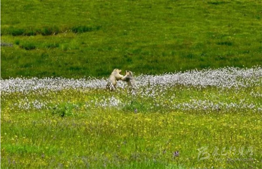 藍(lán)天白云、雪峰皚皚,冰川閃爍、青山融融、綠草茵茵、波光粼粼。湖岸珍禽異獸出沒(méi),湖中野鴨成群,魚兒游弋。山花爛漫,爭(zhēng)芳斗艷,真可謂世間仙境。
