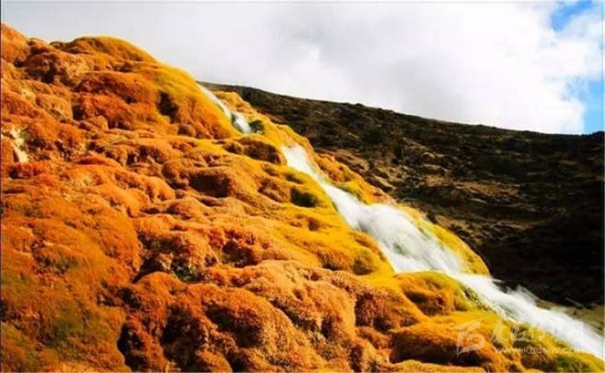 泉華灘海拔約4000米,屬于高山河谷草甸地貌。東南面就是貢嘎山,這里是觀看“蜀山之王”的絕佳位置。它因一種含有大量化學物質(zhì)的泉水在地表產(chǎn)生化學沉淀而成,從另一個山頭傾斜下來大片的白色鈣化土,延伸到谷底后便變化出四層五彩的鈣化池。每個階地上有十幾個大小不同、形態(tài)各異的五色彩池,水深40-70厘米,彩池里水草相依,石花點點,疑為瑤池降臨人間!