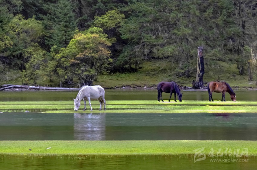 木格措融高山湖泊、原始森林、雪山草原、溪流疊瀑為一體,一派原始古樸而幽靜的自然風光,恍如置身于“瑤池仙境”。