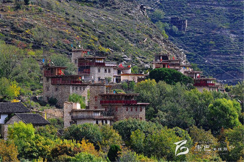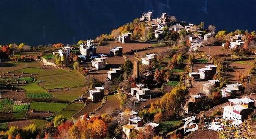 遠(yuǎn)遠(yuǎn)看去,充滿靈氣的山谷中,翡翠般的青草綠樹之中,是那沉甸甸的田地和隱在密林深處的寨房,伴著時有時無的潺潺溪流,一幅富有動感的絕妙山寨畫卷隨之展示在你的眼前。山寨依山面水,周圍綠樹掩映,藏寨從大金河谷層層疊疊向上攀沿,錯落有致的散布在山坡上,一直延伸到卡帕瑪群峰峰的腳下,非常的漂亮。