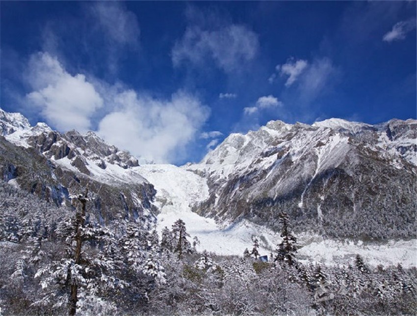 冬天的海螺溝,冰雪飛舞,晶瑩剔透;千姿百態(tài)的冰掛,潔白無(wú)瑕,一塵不染的霜雪,使人恍若置身于美妙的童話世界。海螺溝冬天其間的美,已是難以用語(yǔ)言描述。