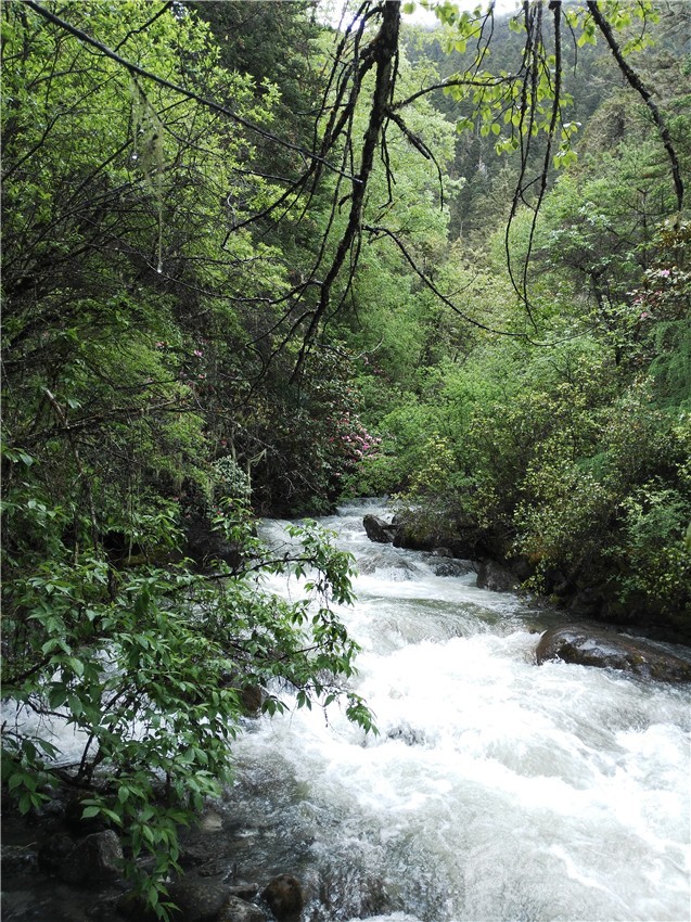 金湯河地區(qū)包括拉角溝在內(nèi),屬“森林植被”地區(qū),動植物資源十分豐富。海拔由低到高,沿途可見牛皮樺、青楊、漆樹、泡花樹、大葉櫟、雅樟、女貞、鐵杉、油松、川白樺、冷杉、云杉等。除此之外,還有木蘭、杜鵑、連香樹、白木以及蟲草、貝母、天麻、大黃等名貴中藏藥材。動物資源,除了“大熊”這個國寶之外,還有金絲猴、白唇鹿、牛羚、黑頸鶴、小熊貓、雪豹、盤羊、毛冠鹿、白馬雞、藏雪雞、獼猴、云豹、血雉等珍稀或國家保護動物??芍^是一塊真正的“寶地”。