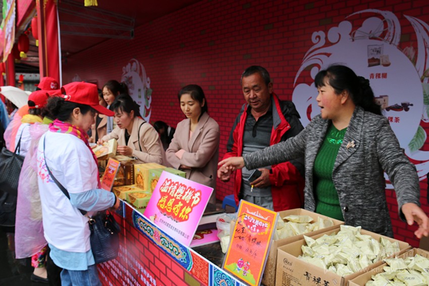 據(jù)王建輝介紹,為了展示本地特色農(nóng)副產(chǎn)品,此次櫻桃節(jié)專程邀請了5家瀘定本土企業(yè)進(jìn)行現(xiàn)場擺展,而貢嘎雪域生物科技有限公司就是其中之一,擺展還不到兩個小時,公司所生產(chǎn)的青稞餅就被外來的游客一搶而空。能夠被眾多游客光顧,王建輝表示,這一切都是櫻桃節(jié)帶來的“福利”?!澳壳坝械拇笮推髽I(yè)通過櫻桃節(jié)了解到了我們的產(chǎn)品,看到了我們發(fā)展的前景和企業(yè)的特色,準(zhǔn)備和我們合作?!蓖踅ㄝx激動的說。