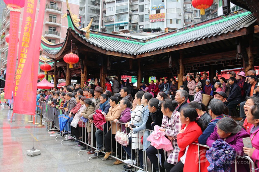 瀘定橋廣場觀看演出的人群。