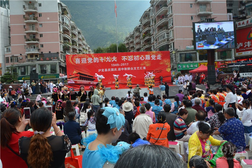 又訊(王術(shù)李)10月1日上午,瀘定陽(yáng)光明媚,天空湛藍(lán)。瀘定縣廣場(chǎng)上人頭攢動(dòng),人山人海。