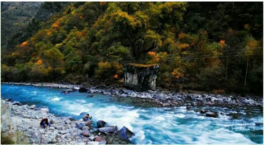 東谷河原名牦牛河,在丹巴縣五個(gè)主干水系中,它是最小的一條,兩岸多為峽谷地貌,僅在支溝匯合處出現(xiàn)有平壩草地。在陡峭高聳的河谷兩岸,針闊葉混交林呈現(xiàn)出深淺不同的綠色,既有青黛,墨綠,又有嫩綠,草青及四季輪番開花的不同品種的大小杜鵑。還不時(shí)有珍禽出沒。每當(dāng)秋高氣爽的季節(jié),一團(tuán)團(tuán),一簇簇的紅葉伴隨杜鵑花在林間綻放,伴以宛轉(zhuǎn)的啾啾鳥嗚;河水清澈明亮,時(shí)而奔騰而下,形成飛瀑,時(shí)而伴著叮咚之聲潺潺而過,這種美景何處能有?老革命家胡耀邦同志游覽后,對此青山綠水贊不絕口,并稱之為“天然盆景”!盆景藝術(shù)一向以“無聲的詩詞,立體的畫卷”來形容。牦牛谷景點(diǎn)正是一個(gè)有著巨大篇幅的詩詞,一個(gè)有著廣闊的立體畫卷。