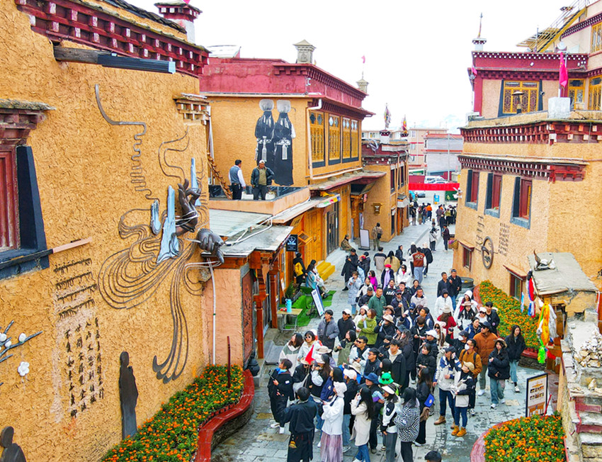 理塘縣古街游客如織。