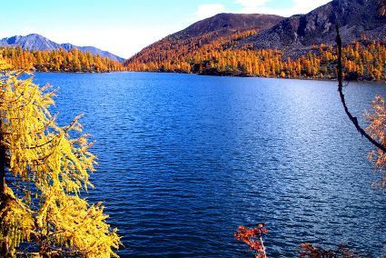 秋色與藍(lán)天相映 明珠與雪山成趣