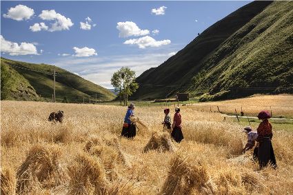 “康北糧倉”甘孜縣青稞香秋收忙
